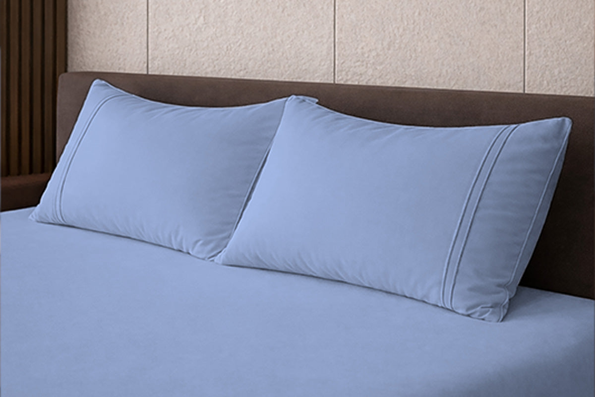 Bel Air Blue Pure Cotton Solid Fitted Bed Sheet 500 TC