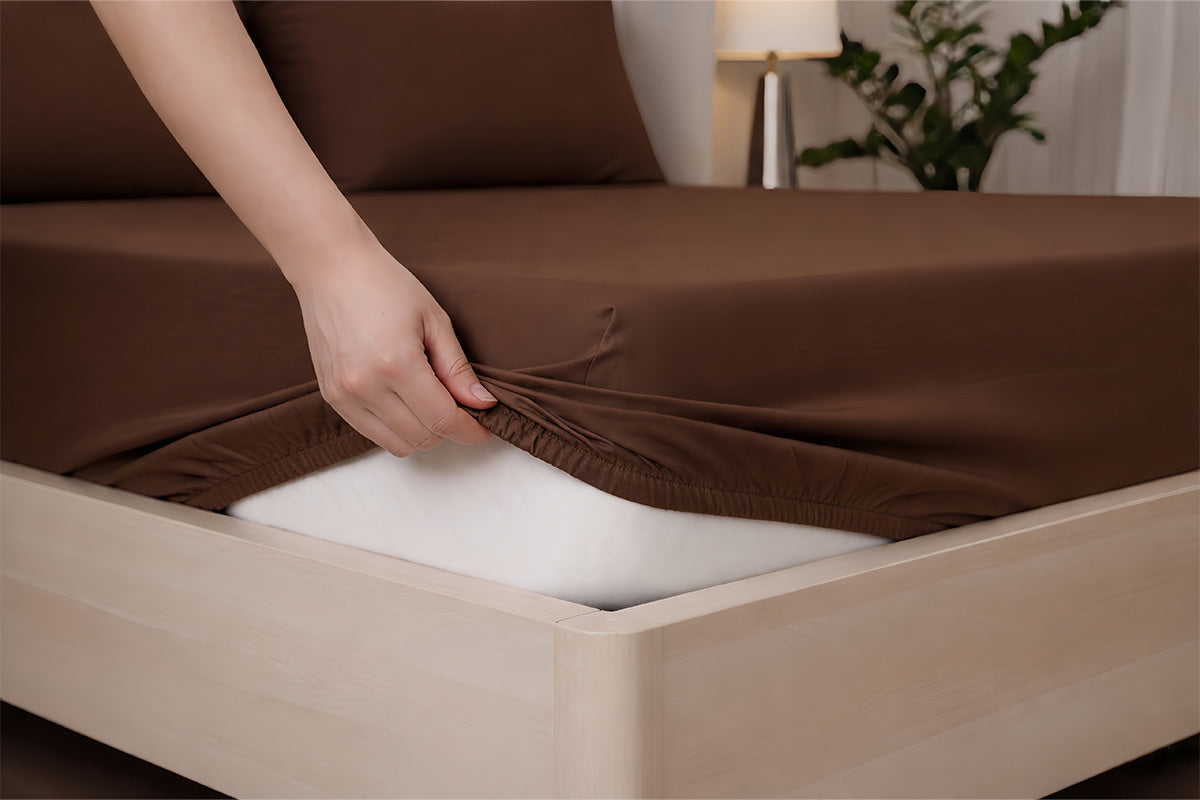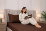 Cocoa Brown Pure Cotton Solid Fitted Bed Sheet 300 TC