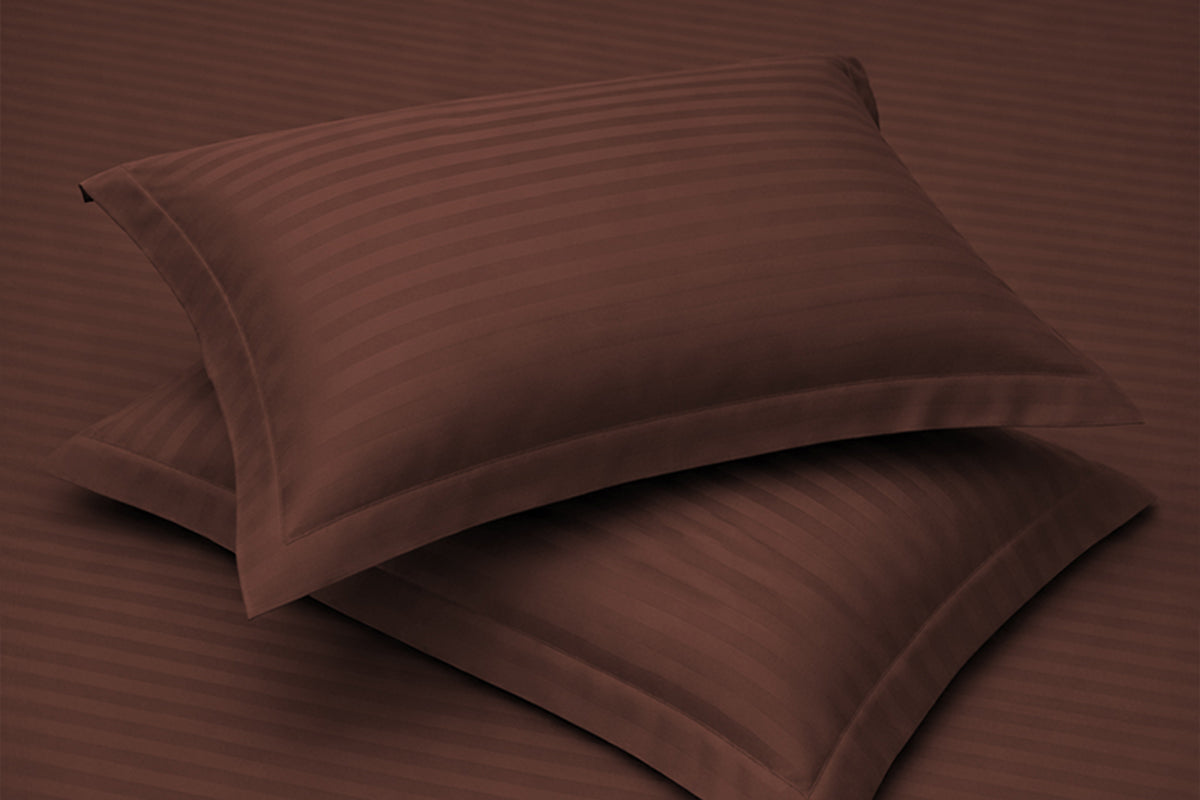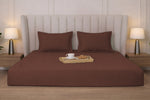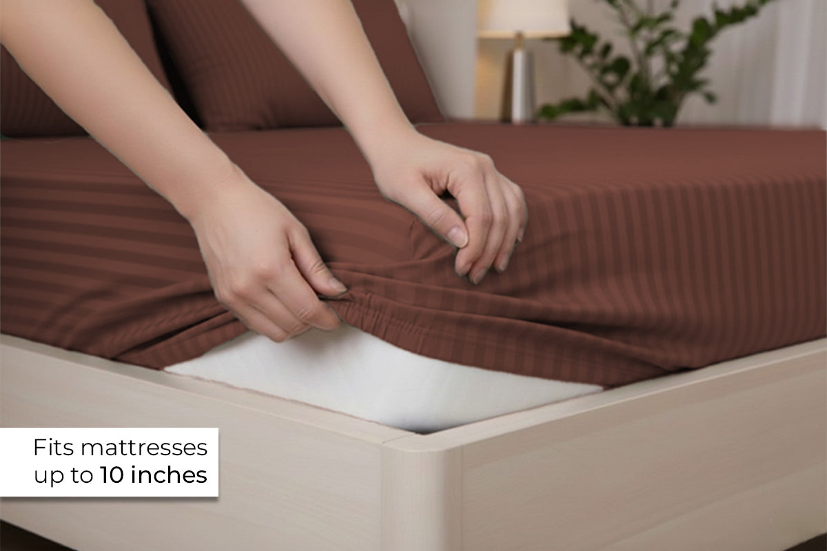 Cocoa Brown Pure Cotton Striped Fitted Bed Sheet 300 TC