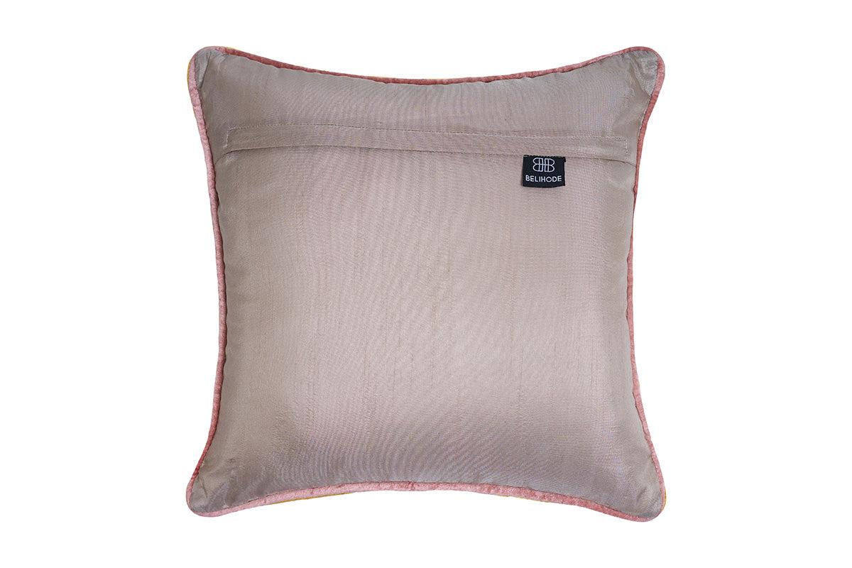 Inspired by flourishing heritage gardens, the Blooming Bagh Cushion Cover features intricate multicolour floral embroidery crafted on a rich velvet base. The detailed needlework brings depth, texture, and artistry to the surface, while the plush velvet lends a soft, luxurious hand feel.
