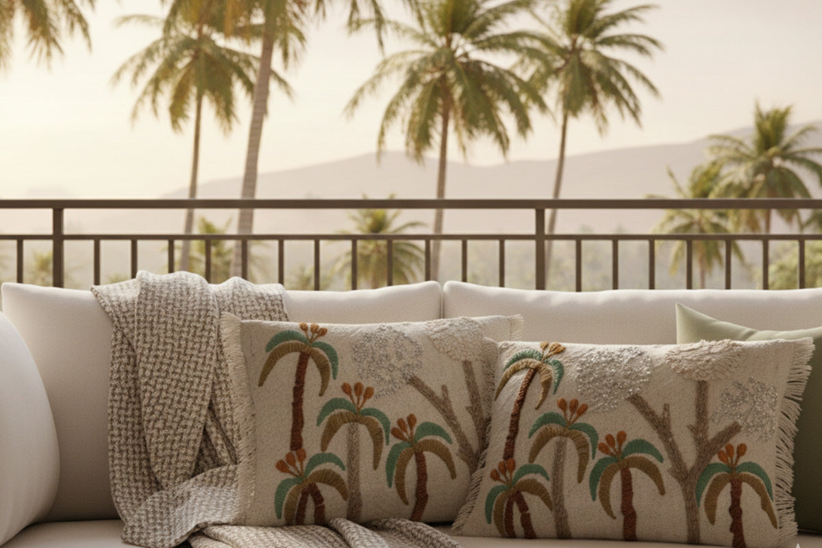 Botanique Palms Hand Embroidered Cushion Cover (Set of 2)