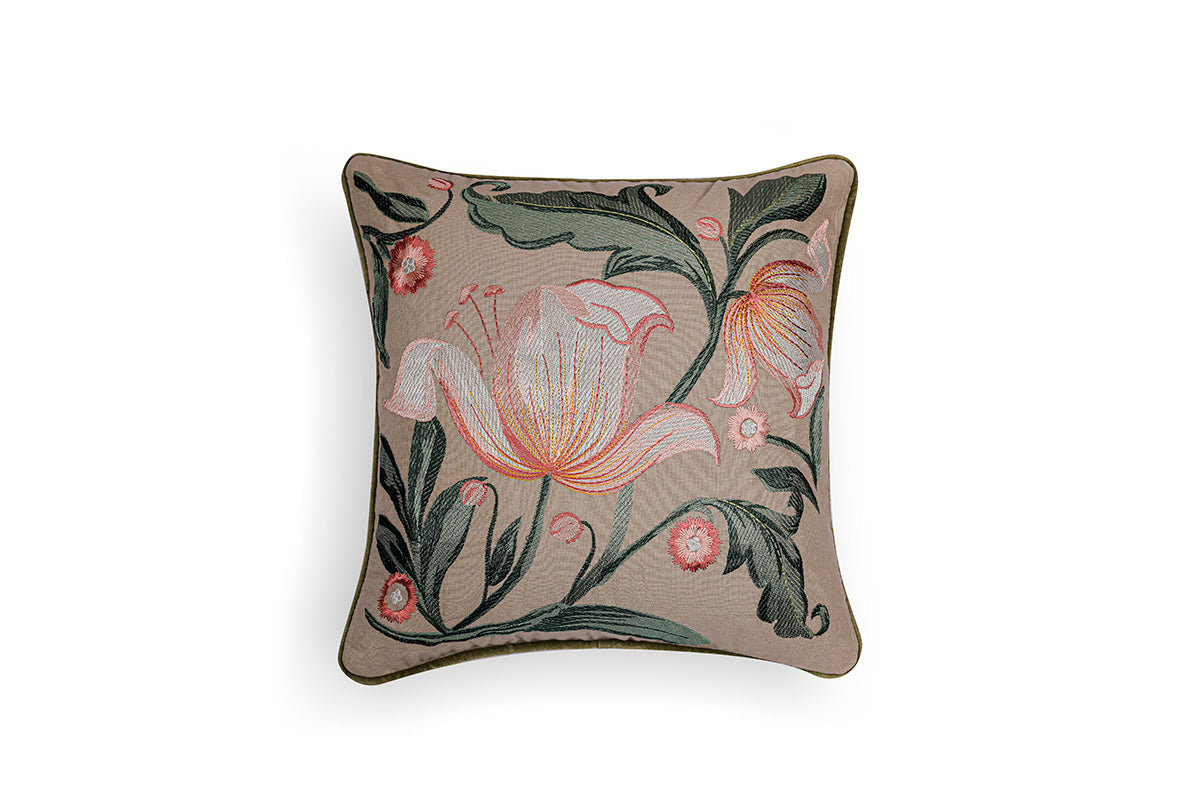 Floraison Edit - Blush Bloom Hand Embroidered Cushion Cover ( Set of 2 )