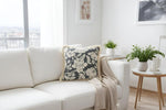 Inspired by the romantic gardens of Paris, the Parisian Bloom Pillow is a work of art for your home. This exquisite piece features a timeless floral pattern meticulously woven into a rich, deep blue fabric, evoking the charm of a moonlit garden. The intricate design is beautifully complemented by a soft, luxurious fringe that adds a touch of bohemian elegance. It's an heirloom-quality accent pillow designed to bring a sense of classic sophistication and artistic flair to your living space.