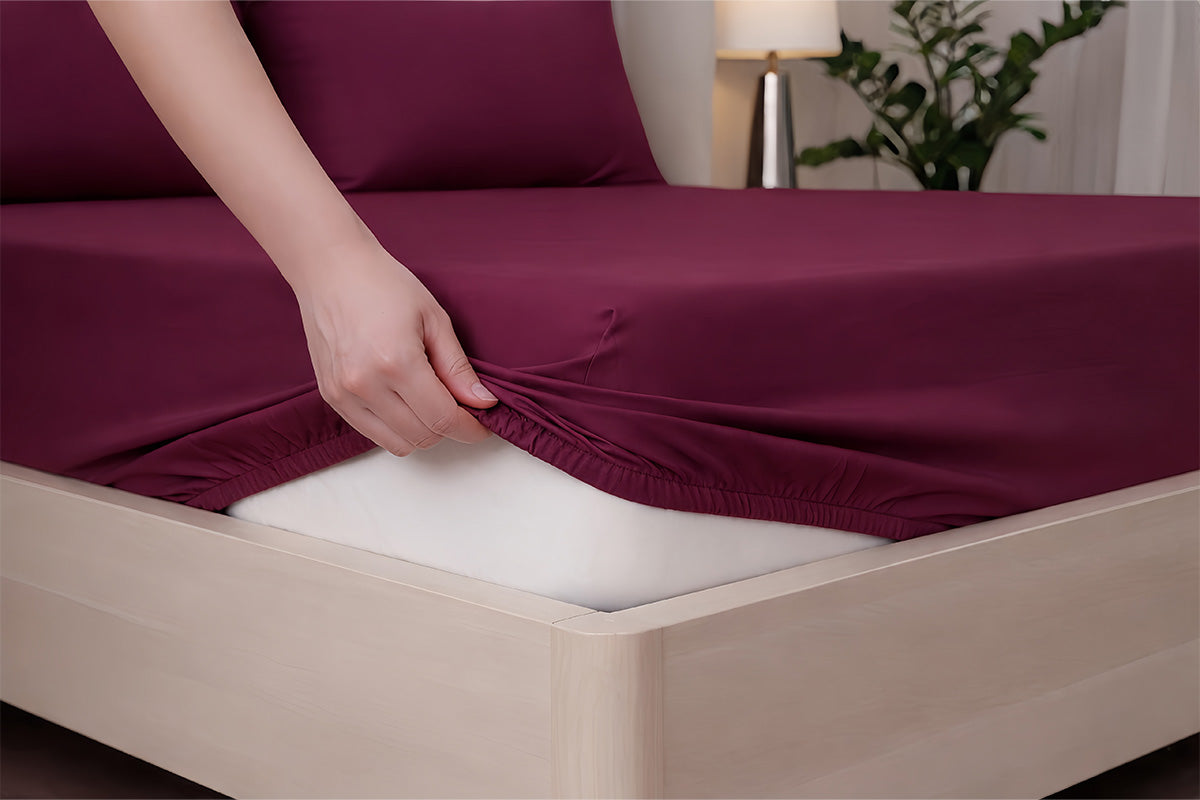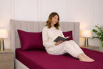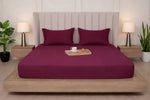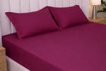 Mulberry Red Pure Cotton Solid Fitted Bed Sheet 300 TC